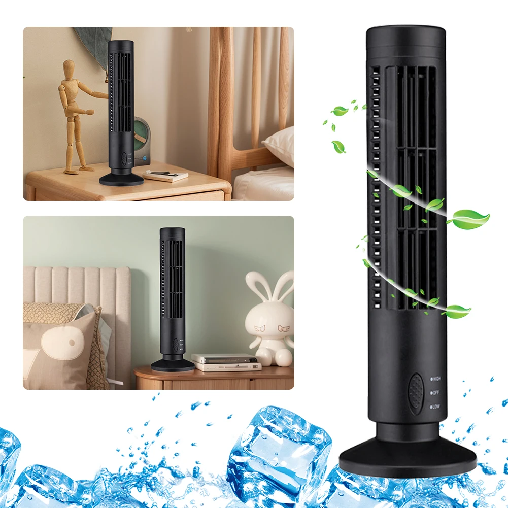 LED Tower Fan Mini Vertical Conditioner 2 Gear Speed No Leaf Air Conditioner Portable Electric Floor Fan for Living Room Bedroom